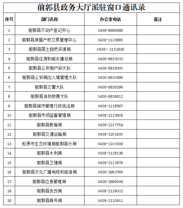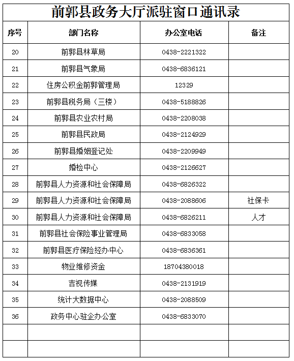 前郭縣政務(wù)大廳派駐單位業(yè)務(wù)咨詢電話