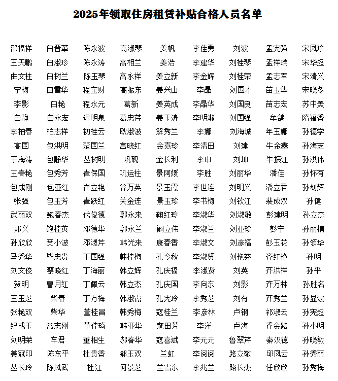 2025年申請(qǐng)公租房及領(lǐng)取住房租賃補(bǔ)貼合格人員公示名單