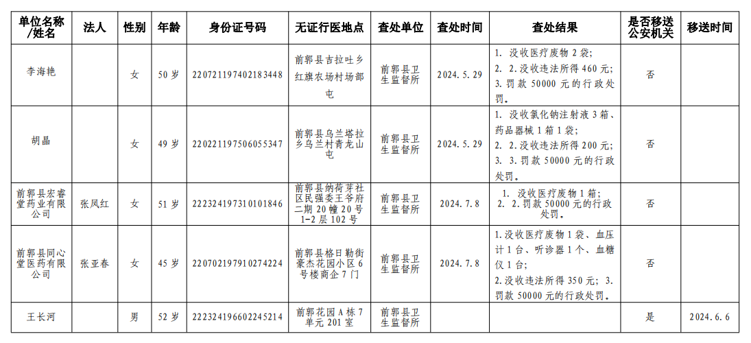 2024年無(wú)證行醫(yī)“黑名單”公示表